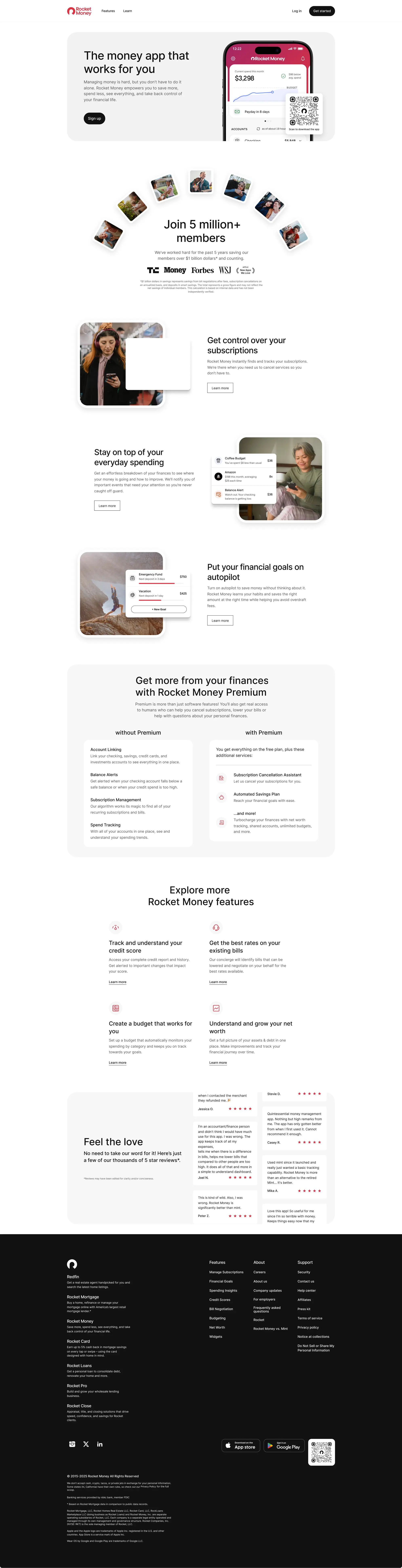 Rocket Money is a financial technology startup built to make money management simple and stress-free. The app helps people take full control of their finances by tracking spending, managing subscriptions, creating budgets, and automating savings. With millions of users already on board, Rocket Money makes it easier to see where your money goes and how to save more without overthinking it. From spotting hidden subscriptions to helping you reach financial goals, the platform gives you clarity and confidence. Whether you want to cut costs, grow your savings, or just stay on top of your money, Rocket Money does the work.